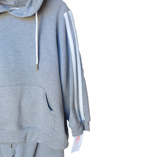 Caratteristiche: Tuta felpa invernale taglie da 7.8 a 11.12. Felpa con cappuccio, tasca davanti, doppia banda grigia sulla manica. Pantalone a gamba larga con tasche e bande grigie laterali, cinta elastica e con coulisse. SPEDIZIONE IMMEDIATA 90% cotone 10% elastam